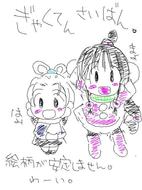 2008/02/10 Category : memo 手書き。 手書きブログ↓ttp://pipa.jp/tegaki/VBlogList.jsp?ID=109631月くらいから始めてたんですが、放置してました。んで、再開しましただ。絵板以上に「投げっぱなし絵」を連投の予感ですが、もし宜しかったら覗いてやってくださいな。「ぴくしぶ」も興味あるんですが、まぁいいです。(これ以上増やしてどうする…。)カンバスサイズがデカイのがちょっちネックです。自分で大きさ選択できるとイイな…。 PR