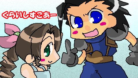 2007/09/20 Category : play a game FF7CC日記【5】 新キャラのアンジールとジェネシスに脇目も振らず、ただひたすら突っ走ってます。ク ラ ウ ドー(人・∀・*)☆彡クラウド出てきたわぁ!クラウドクラウド!きゃーきゃー。まだ神羅兵だから、ソルジャーに憧れてる。真っすぐな子!どこからあんな「興味ないね。」と、クールな人に豹変するんかしらー。ネタバレしない程度にお送りするのがゲーム日記のモットーです。もしかしてバラしてたら、すいませんです。けど、今回のクライシスコアって、たぶん7本編やってる事が前提条件ですけども。