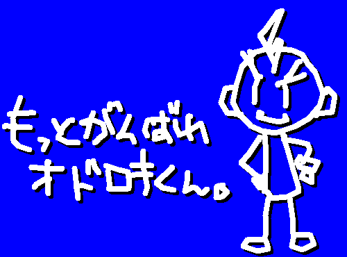 2007/06/03 Category : memo うごうご。 ttp://mclover.net/Program/Ugo.htmウゴツールで描いてみました。絵をクリックしてみてくださーい。うごうごして面白いですよー。うごうご。ウゴウゴルーガの「もっと頑張れまさおくん!」みたいな感じで、お絵かきできます。最近、Lhacaという解凍ツールを手に入れて、いろいろ遊んでます。ttp://park8.wakwak.com/~app/Lhaca/
