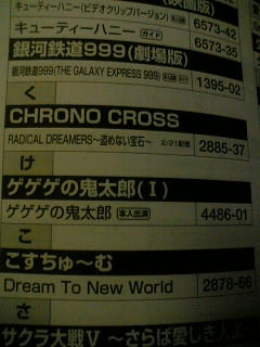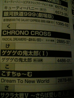 2007/02/17 Category : memo クロノクロス! カラオケですよ。DAMですよ。某mi×iの某コミュでも見ましたが、クロノクロスの曲が今月21日に配信ですよ。リクエストしまくればゼノギアスのエンディングも配信されっかな??