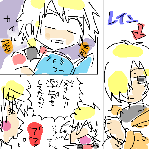 2010/03/07 Category : play a game 侵略日記【2】 リオンそっくりのレインが出てきまちた!おほー。しかし、剣はディムロスそっくりのケロムスなのか。…シャルじゃないのかー。このゲームをオススメする人・ケロロのアニメ・漫画も、どっちもファン・テイルズシリーズ好きだじぇ!・そこそこマニアックなネタが散りばめてあっても、「これはアレのことだな?」とニヤニヤできる人。スレを見ると、ハーツとD2のシステム流用らしいので、どっちかプレイしてると遊びやすいかもですぅ。個人的に、ものっそいヒットした中の人ネタ。とある街で占い(無料)してもらうと、・クルルに「ネクロマンサーと呼ばれてたか?」・ドロロ「寒いギャグは好きですか?」・ギロロ「銃から剣士にならないか?弟子を取れば、栄光を掴む者になりそう。」・ケロロ「名前をカペルにしないか?」・タママ「食べ物に注意したほういい(うろ覚え)」