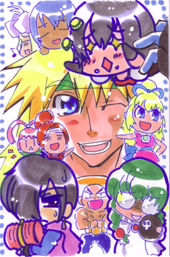 2009/04/20 Category : picture 絵とか。 テイルズ絵ですが。こんな感じでー。でー。ヴェスペリア絵のペンは、紫の紙用マッキー(水性)で。デスティニー絵は…そこらへんにあったペンで描いたから、にじむにじむ…(涙)反省反省。