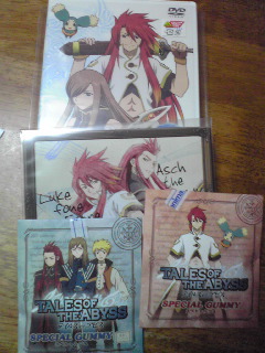 2009/02/23 Category : memo DVD1巻。 とゆわけで、1巻ゲットです!ルークの性格がまだ悪い頃で、ドラマCDもいい感じ♪ジェイドの「ぽちっと!」が、どう聴いてもクルルです。ありが(ry
